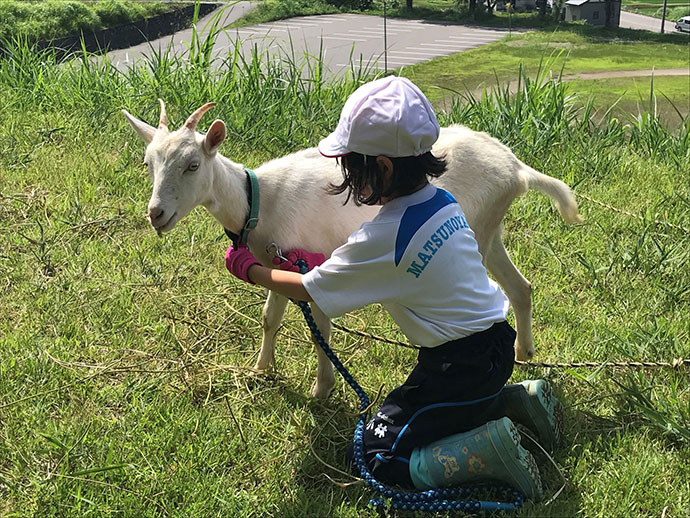 まつのやま学園では「まつのやまタイム」という探究学習がある。稲刈りやヤギの世話など、地元の人たちの仕事を体験しつつ、貴重な学びを得る