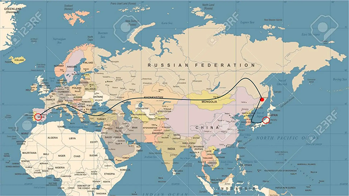 スペインのマドリードを2025年5月に出発。紛争中のウクライナを避けるように黒海の下をくぐるようにして中央アジアを抜けて極東、そして日本へ。約2万2000㎞の旅路だ