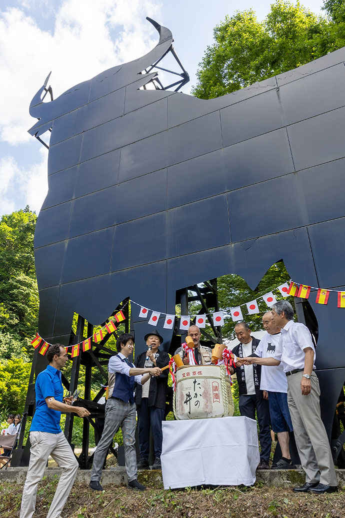 松之山温泉街の一番奥、不動滝の横に「ブラックシンボル」と呼ばれる巨大な牡牛の像が建っている。スペインのシェリー酒メーカーの老舗「オズボルネ」のシンボルだが、それを目指し、はるばる本国スペインから一人のライダーが大陸を横断し今夏遂に目的地に到着した。スペインと日本、遠い距離を経たてつつもつながる思い──国境を越えた人と文化の絆をレポート